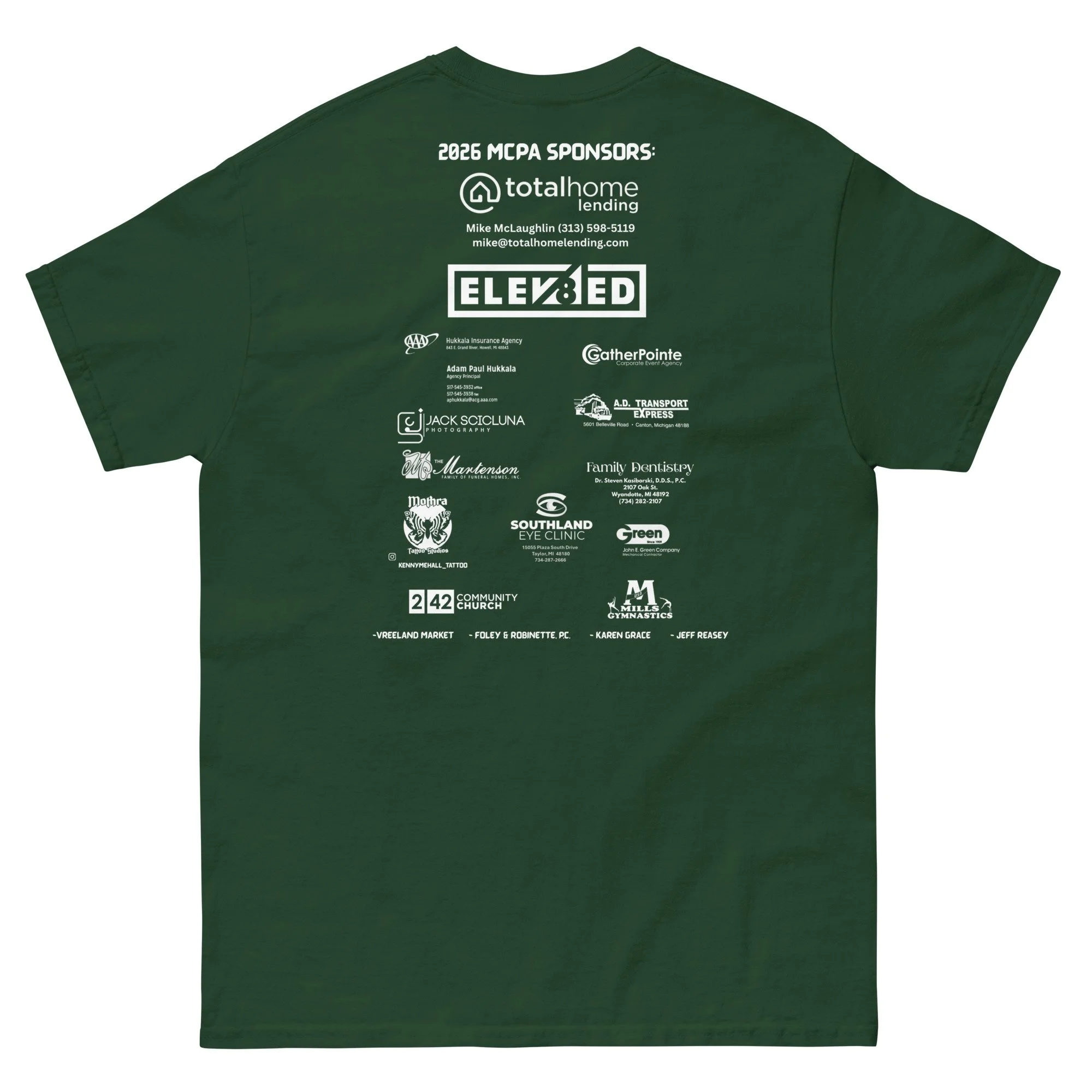 • Double-needle stitching at shoulders, armholes, neck, waistband, and cuffs